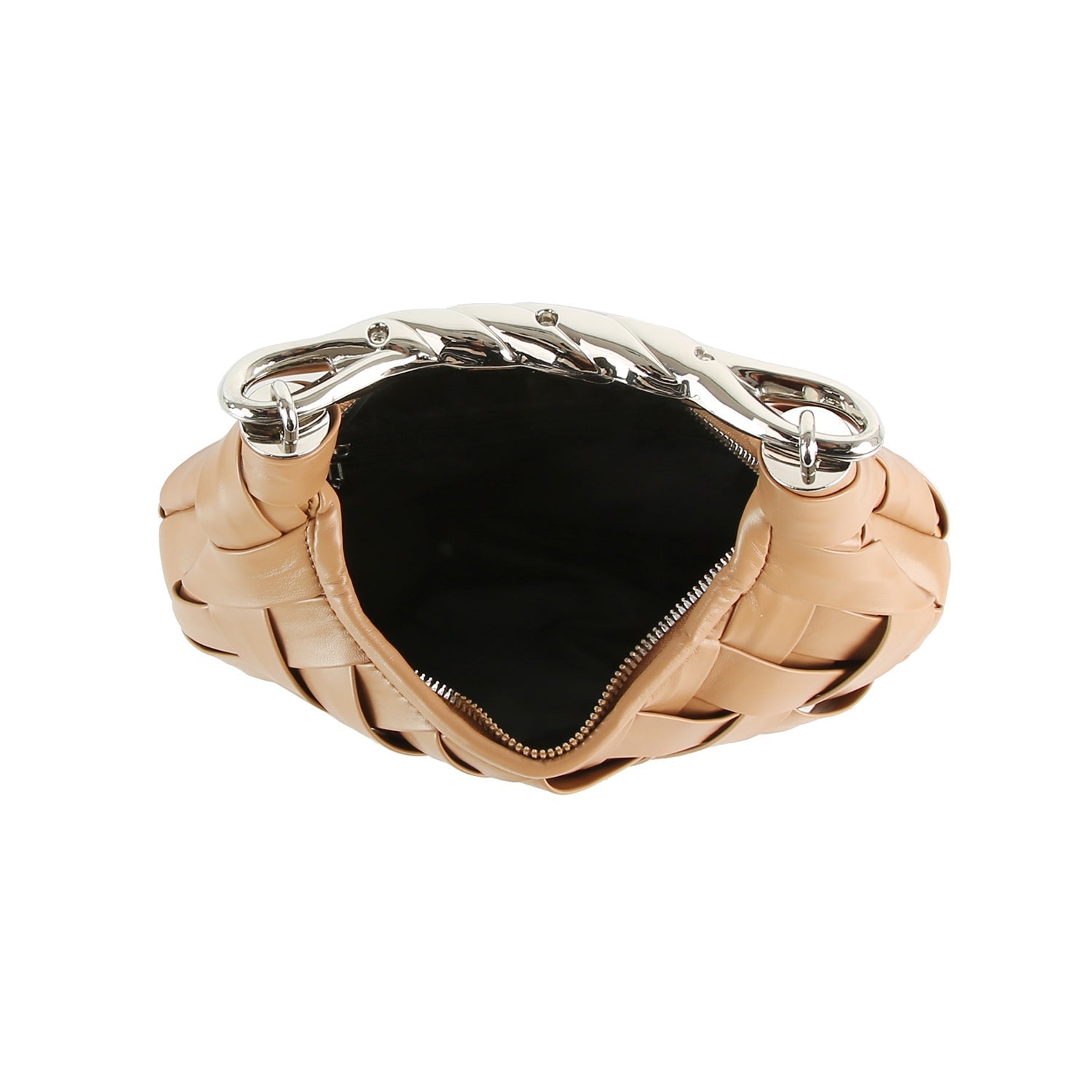 Woven Vegan Leather Metal Handle Shoulder Bag